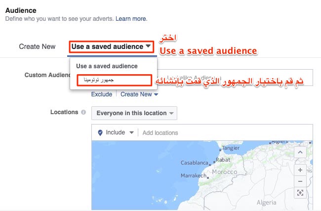 باقي الإعدادات يمكنك تركها على حالتها الإفتراضية. وعند الإنتهاء قم بالضغط على الزر Create Audience وسيصبح زوار موقعك عبارة عن ترافيك جاهز للإستهداف متى أردت ذلك. - بعد هذا، أنت الآن تستطيع استخدام هذا الجمهور للإستهداف في إعلاناتك على فيسبوك، فقط عند البدء في إنشاء إعلان جديد قم باختيار الجمهور الذي أنشأناه (جمهور توتومينا) كترافيك مستهدف للإعلان وبعدها فيسبوك سيتولى باقي المهمة.